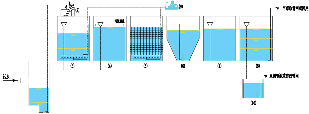 • Biological contact oxidation process (equipment code:HZ-YTH-LSP-()m3/d-O/U)